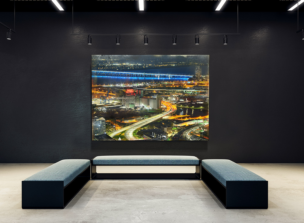 Technique mixte : photographies nocturnes, interventions numériques, impression jet d’encre sur canevas, peinture aérosol et vernis. L’édition originale est limitée à 25 exemplaires (tous formats confondus) et chacune des oeuvres de la série est légèrement différente des autres. Pour plus de détails: [email protected].
