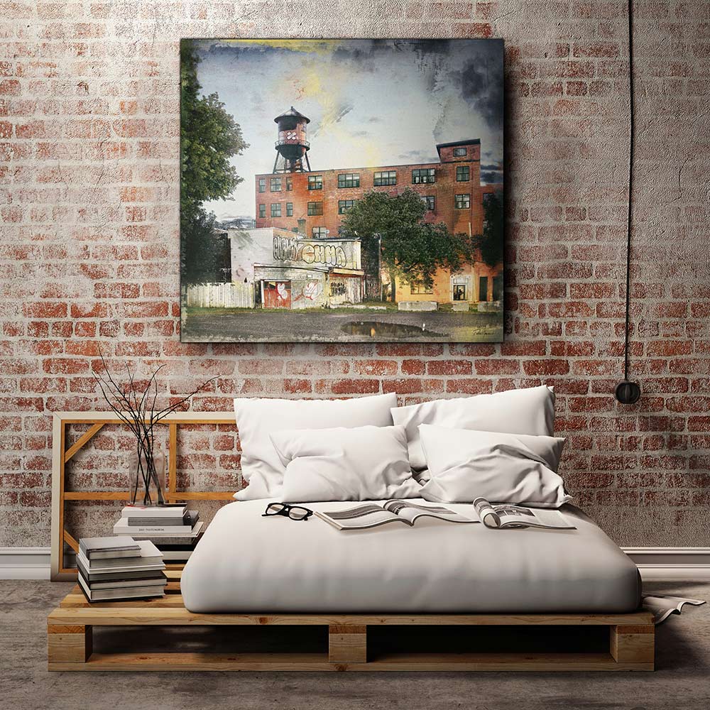 Technique mixte : photographies nocturnes, interventions numériques, impression jet d’encre sur canevas, peinture aérosol et vernis. L’édition originale est limitée à 25 exemplaires (tous formats confondus) et chacune des oeuvres de la série est légèrement différente des autres. Pour plus de détails: [email protected].