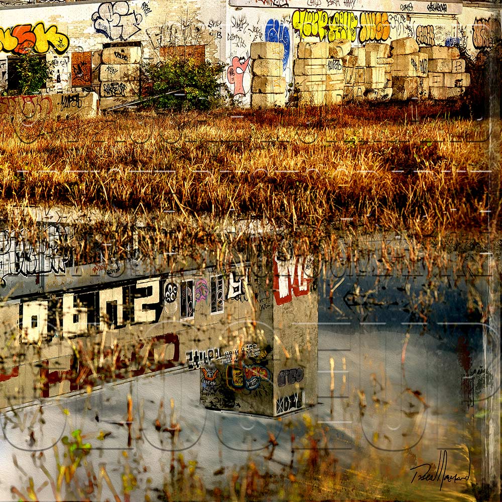 « Longtemps, je suis parti clandestinement. De Hochelaga à Saint-Henri ou à Pointe-Saint-Charles. À la recherche du point de vue parfait, je me faufilais parmi les ombres au cœur des nuits de métal. Nuits de Montréal. » C’est ce qu’on peut lire dans ma démarche artistique (du moins, dans la version actuelle). Je suis ici passé par le quartier Côte-St-Paul (eh oui, encore le Sud-Ouest!) et j’y ai découvert une fin de vie, un abandon qui ne détonne pas avec ce coin de la ville. Souffle court et vulnérabilité déconcertante, ces lieux sont pourtant plein de vivacité.