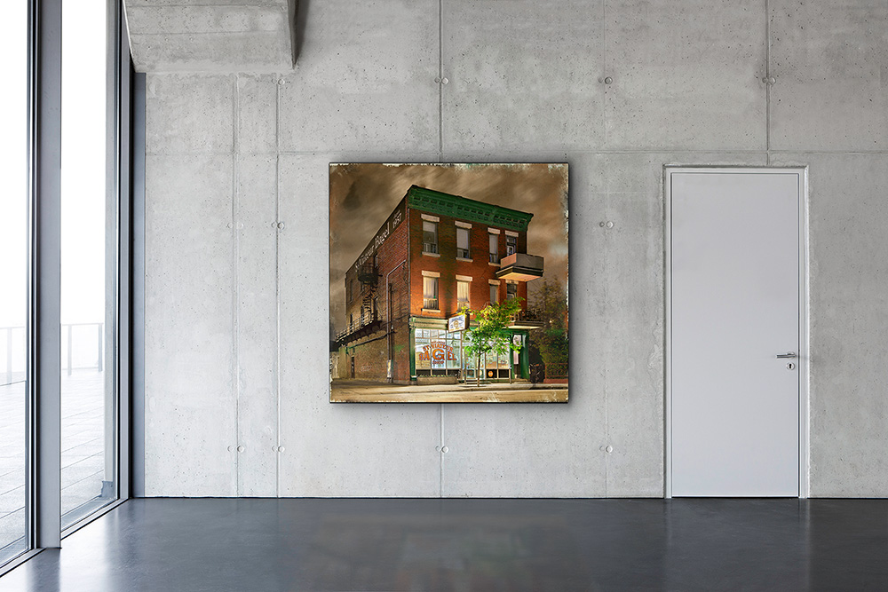 Technique mixte : photographies nocturnes, interventions numériques, impression jet d’encre sur canevas, peinture aérosol et vernis. L’édition originale est limitée à 25 exemplaires (tous formats confondus) et chacune des oeuvres de la série est légèrement différente des autres. Pour plus de détails: [email protected].