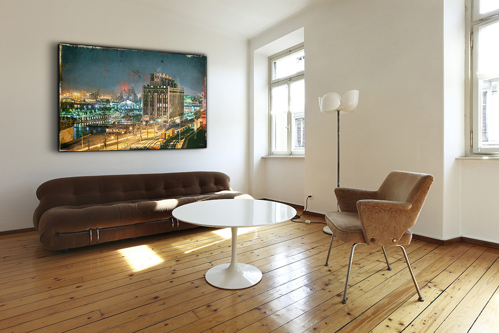 Technique mixte : photographies nocturnes, interventions numériques, impression jet d’encre sur canevas, peinture aérosol et vernis. L’édition originale est limitée à 25 exemplaires (tous formats confondus) et chacune des oeuvres de la série est légèrement différente des autres. Pour plus de détails: [email protected].