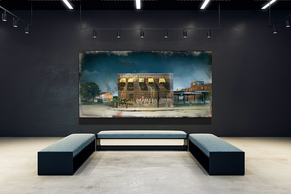 Technique mixte : photographies nocturnes, interventions numériques, impression jet d’encre sur canevas, peinture aérosol et vernis. L’édition originale est limitée à 25 exemplaires (tous formats confondus) et chacune des oeuvres de la série est légèrement différente des autres. Pour plus de détails: [email protected].