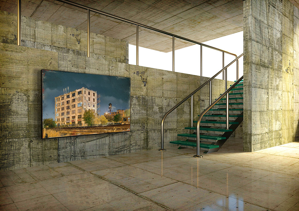 Technique mixte : photographies nocturnes, interventions numériques, impression jet d’encre sur canevas, peinture aérosol et vernis. L’édition originale est limitée à 25 exemplaires (tous formats confondus) et chacune des oeuvres de la série est légèrement différente des autres. Pour plus de détails: [email protected].
