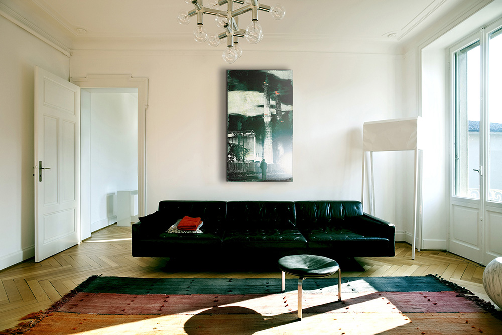 Technique mixte : photographies nocturnes, interventions numériques, impression jet d’encre sur canevas, peinture aérosol et vernis. L’édition originale est limitée à 25 exemplaires (tous formats confondus) et chacune des oeuvres de la série est légèrement différente des autres. Pour plus de détails: [email protected].