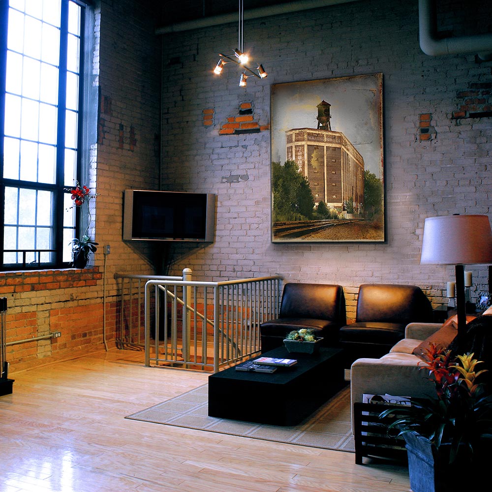 Une des missions de mon travail est d’immortaliser des icônes visuelles de Montréal. Des bâtiments parfois qui passent inaperçus, mais aussi, comme dans le cas de cette oeuvre, des bâtiments qui marquent le visuel de Montréal depuis des années. Impossible que notre oeil ne soit pas attiré par la forme incongrue de cette bâtisse, surmontée par un château d’eau.