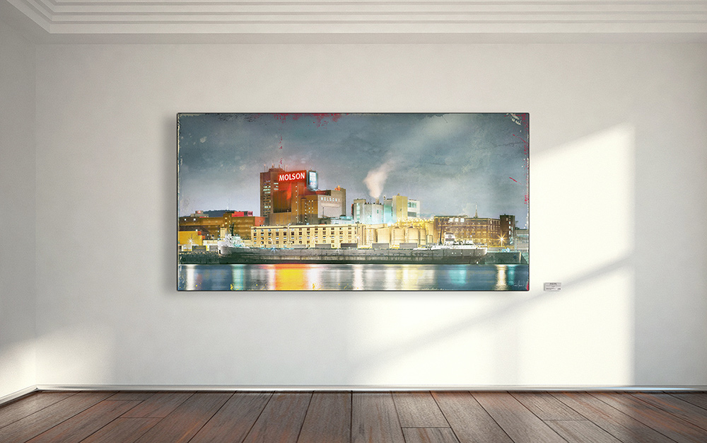 Technique mixte : photographies nocturnes, interventions numériques, impression jet d’encre sur canevas, peinture aérosol et vernis. L’édition originale est limitée à 25 exemplaires (tous formats confondus) et chacune des oeuvres de la série est légèrement différente des autres. Pour plus de détails: [email protected].