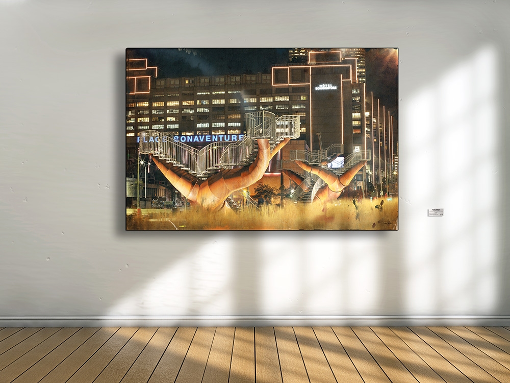 Technique mixte : photographies nocturnes, interventions numériques, impression jet d’encre sur canevas, peinture aérosol et vernis. L’édition originale est limitée à 25 exemplaires (tous formats confondus) et chacune des oeuvres de la série est légèrement différente des autres. Pour plus de détails: [email protected].