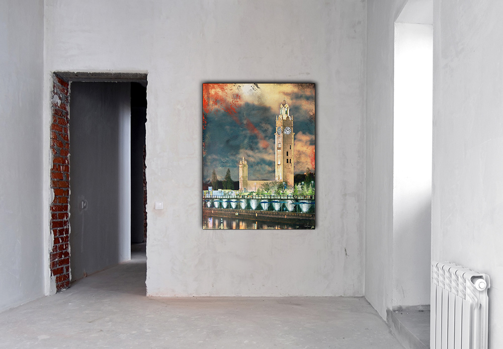 Technique mixte : photographies nocturnes, interventions numériques, impression jet d’encre sur canevas, peinture aérosol et vernis. L’édition originale est limitée à 25 exemplaires (tous formats confondus) et chacune des oeuvres de la série est légèrement différente des autres. Pour plus de détails: [email protected].