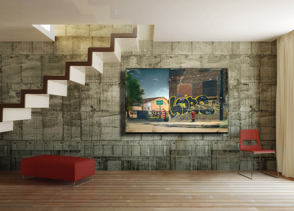 Technique mixte : photographies nocturnes, interventions numériques, impression jet d’encre sur canevas, peinture aérosol et vernis. L’édition originale est limitée à 25 exemplaires (tous formats confondus) et chacune des oeuvres de la série est légèrement différente des autres. Pour plus de détails: [email protected].